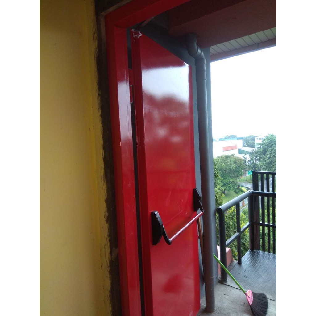 Pintu exit emergency, emergency exit door specification, standar jarak tangga darurat, pintu kecemasan, harga pintu.